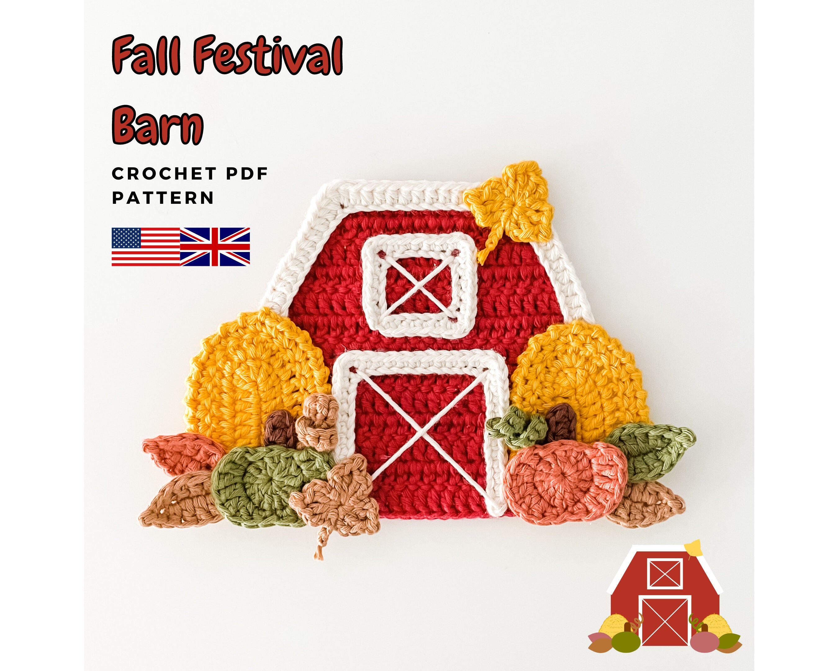 Crochet Barn Applique Pattern, Crochet Fall Festival, Crochet Fall